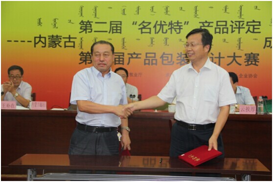 201487日,首屆內蒙古自治區農畜產(chǎn)品包裝設計競賽成果與2014(第二屆)內蒙古“名優(yōu)特”農畜產(chǎn)品認定成果發(fā)布會(huì )在國際會(huì )展中心召開(kāi),自治區農牧業(yè)廳廳長(cháng)郭健、副廳長(cháng)云挨厚、副廳長(cháng)賈躍峰、辦公室主任侯雁冰及內蒙古農牧業(yè)產(chǎn)業(yè)化龍頭企業(yè)協(xié)會(huì )會(huì )長(cháng)張世斌、執行會(huì )長(cháng)林永亮,招商銀行呼和浩特分行行長(cháng)曲亮、內蒙古銀行副行長(cháng)靳生榮、中國郵儲銀行內蒙古分行副行長(cháng)鞏連華、中國銀行內蒙古分行中小企業(yè)部總經(jīng)理劉揚出席了此次會(huì )議,農牧業(yè)廳產(chǎn)業(yè)化處處長(cháng)王補在主持會(huì )議。