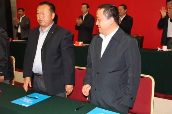 內蒙古米真羊絨紡織有限責任公司與柴達木羊絨有限公司簽署協(xié)議現場(chǎng)