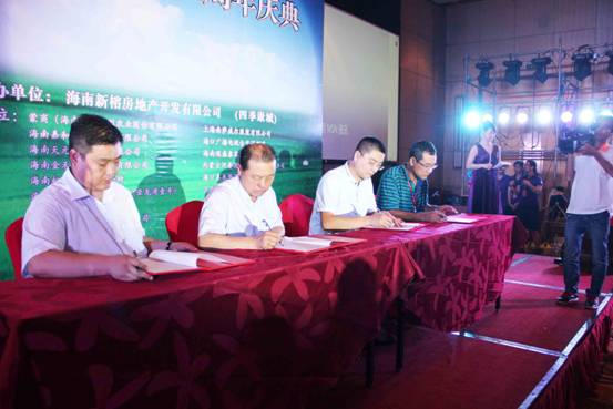 內蒙古農牧業(yè)產(chǎn)業(yè)化龍頭企業(yè)協(xié)會(huì )執行會(huì )長(cháng)林永亮、內蒙古新蒙商聯(lián)合會(huì )秘書(shū)長(cháng)馬廣、海南省內蒙古商會(huì )執行秘書(shū)長(cháng)高華章、內蒙古保全農產(chǎn)品科技發(fā)展有限公司總經(jīng)理白龍簽署了內蒙古海南綠色產(chǎn)品雙向輸出合作協(xié)議