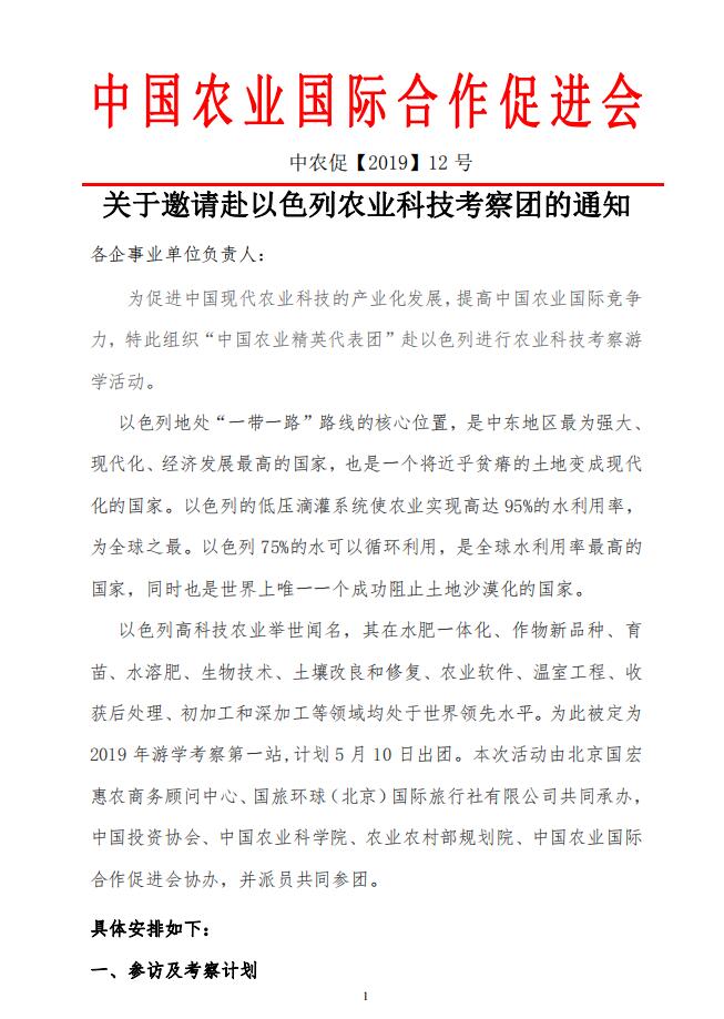 標題:關(guān)于邀請赴以色列農業(yè)科技考察團的通知