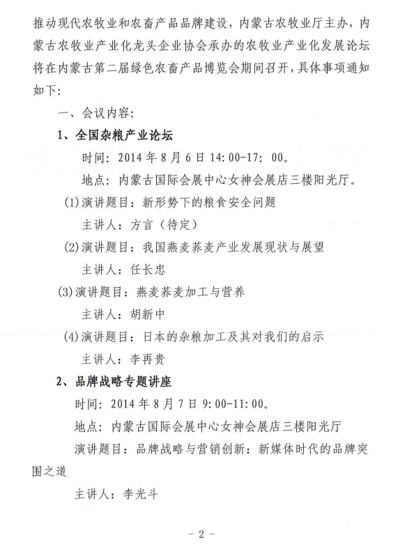 關(guān)于舉辦內蒙古農牧業(yè)產(chǎn)業(yè)化發(fā)展論壇的通知
