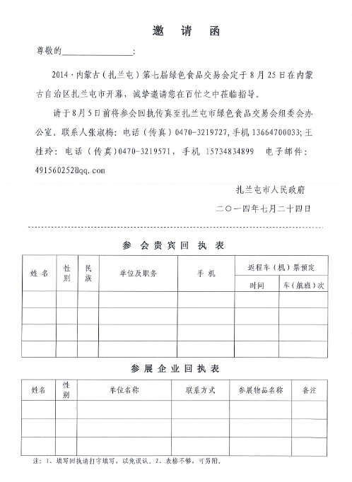 2014·內蒙古(扎蘭屯)第七屆綠色食品交易會(huì )邀請函