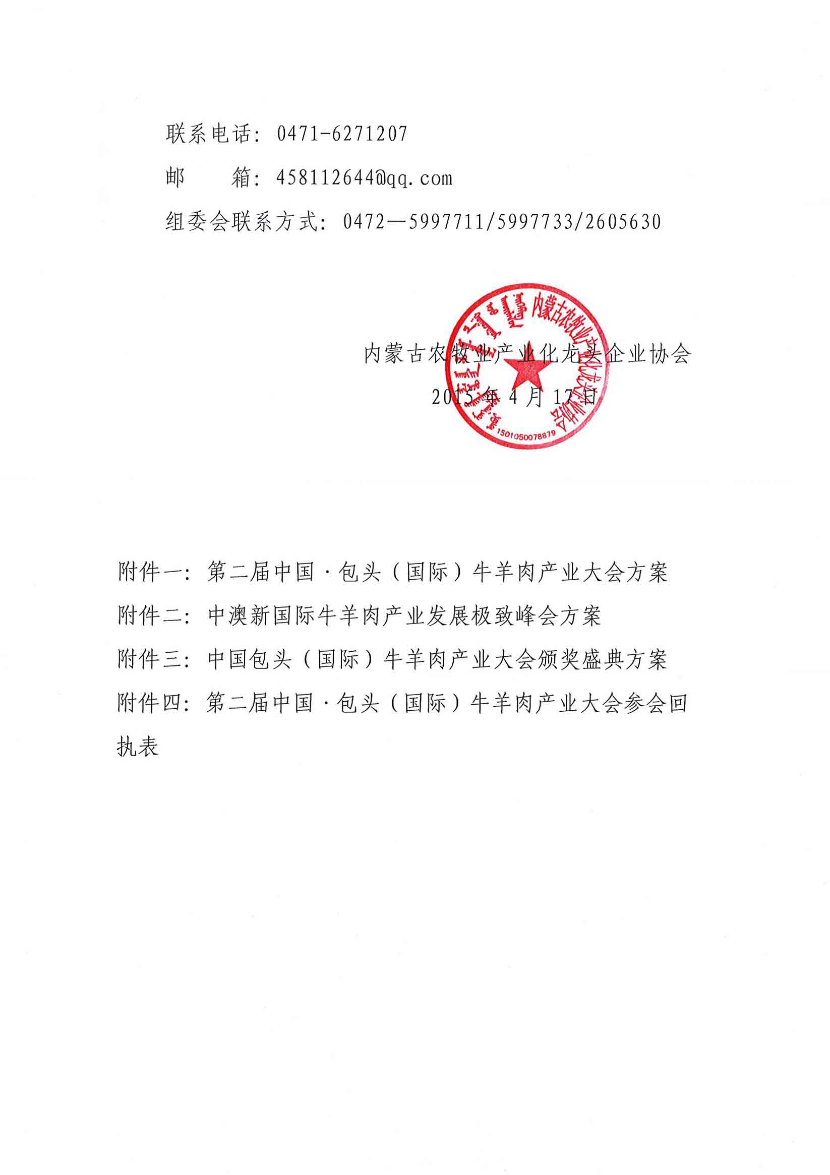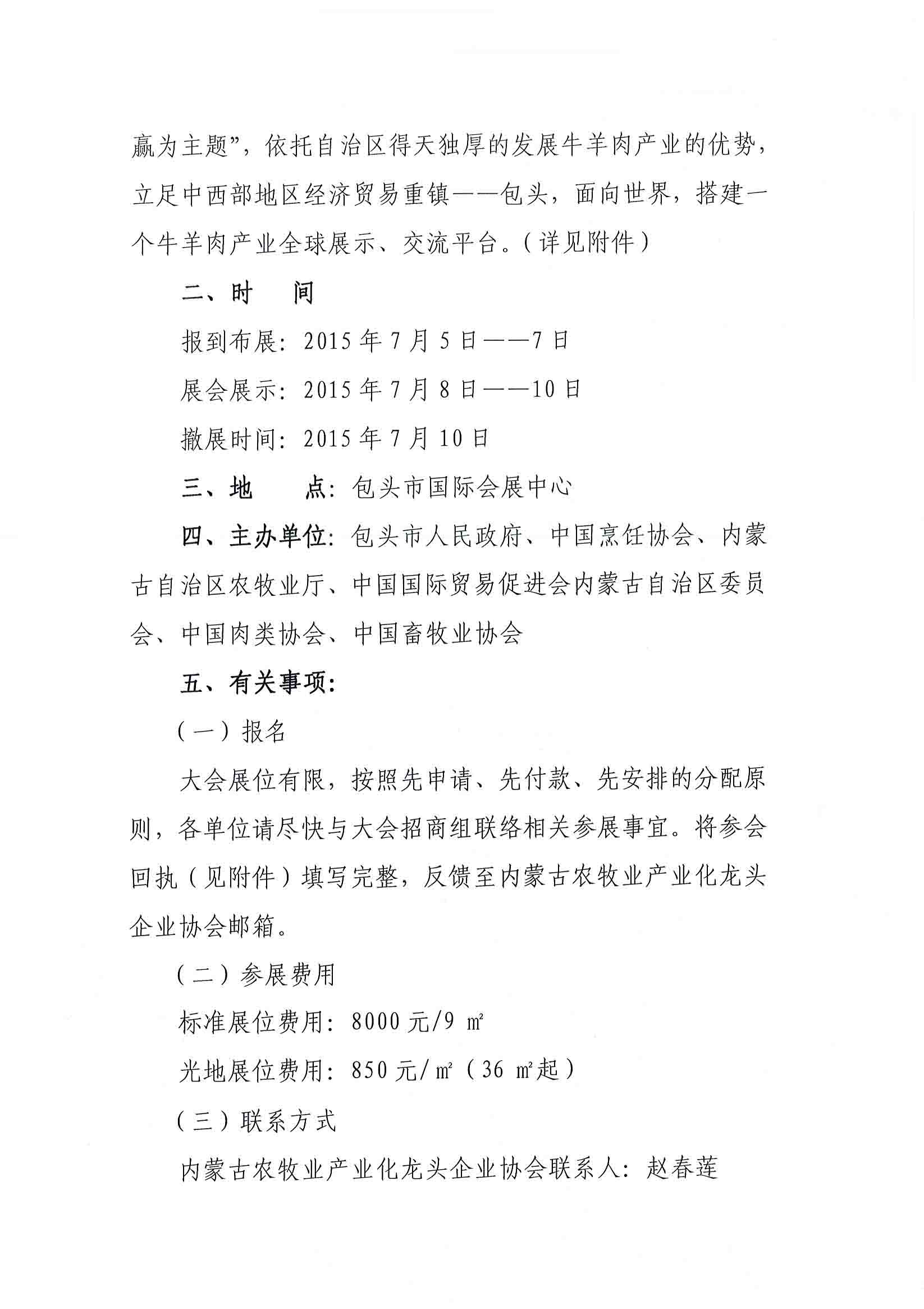 關(guān)于組織會(huì )員企業(yè)參加第二屆中國·包頭(國際)牛羊肉產(chǎn)業(yè)大會(huì )的通知