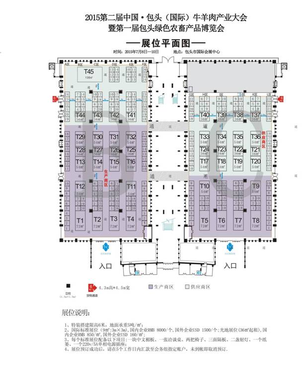 根據規劃,展館占地面積為10664平米。其中B館占地面積為5832平米可供搭建標準展位(3mX3m256個(gè),主要以國內外牛羊肉生產(chǎn)加工企業(yè)、生產(chǎn)加工設備、包裝技術(shù)、冷鏈服務(wù)、各地區集體參展、獸醫獸藥、圈舍舍建設、飼草、金融服務(wù)機構、品牌營(yíng)銷(xiāo)機構等企業(yè)為主導。C館占地面積4832平米,可供搭建標準展位(3mX3m229個(gè),主要以包頭市轄內各農牧業(yè)企業(yè)等參展單位為主。