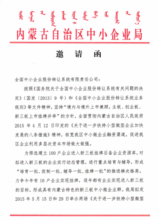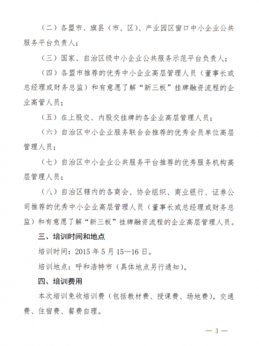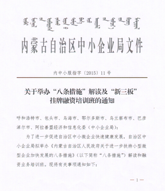 關(guān)于組織會(huì )員單位參加“八條措施”解讀及“新三板”掛牌融資培訓班的通知