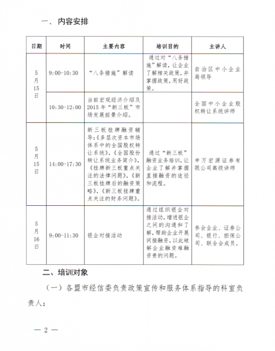 附件2:關(guān)于組織會(huì )員單位參加“八條措施”解讀及“新三板”掛牌融資培訓班的通知