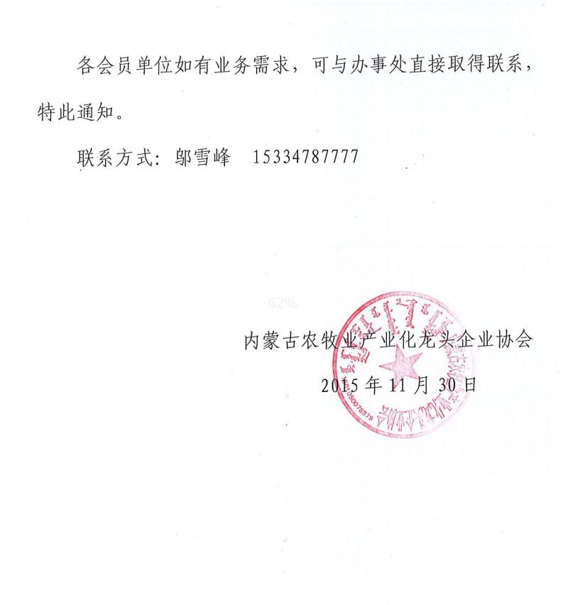 關(guān)于變更內蒙古農牧業(yè)產(chǎn)業(yè)化龍頭企業(yè)協(xié)會(huì )北京辦事處組織機構的通知