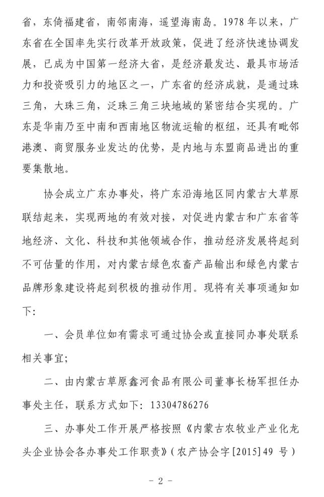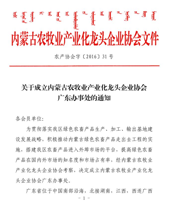 關(guān)于成立內蒙古農牧業(yè)產(chǎn)業(yè)化龍頭企業(yè)協(xié)會(huì )廣東辦事處的通知