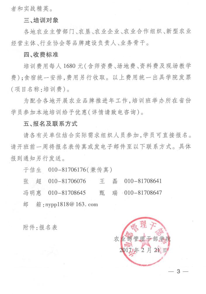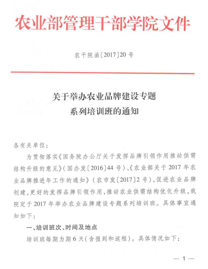 關(guān)于組織參加農業(yè)品牌建設專(zhuān)題系列培訓班的通知
