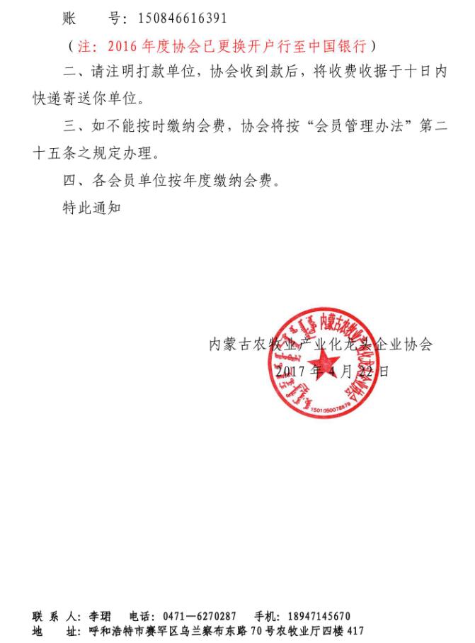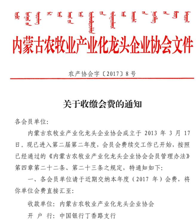 關(guān)于收繳會(huì )費的通知【2017】8號