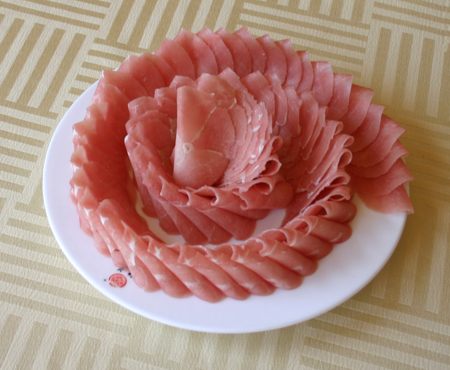 二十五、尾油卷:選用原料:去掉云皮、血線(xiàn)之后精選的羊尾油,經(jīng)過(guò)特殊工藝之后,卷制而成。其特點(diǎn)是切片后薄如紙、勻如晶,口感不膻不膩。