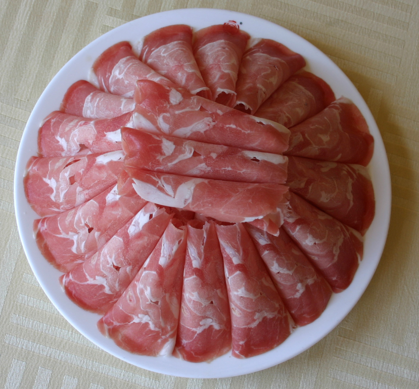 二十七、杜伯羊上腦:選用原料:選自國外引進(jìn),雜交改良的羊種,經(jīng)過(guò)精選加工之后,取最精華之上腦部分,層疊壓茬,紅白相間,碼制而成的,其外觀(guān)精致,上盤(pán)漂亮,口感鮮美爽口。