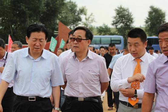 內蒙古農牧業(yè)廳副廳長(cháng)云挨厚(左二)等領(lǐng)導為工廠(chǎng)開(kāi)業(yè)剪彩
