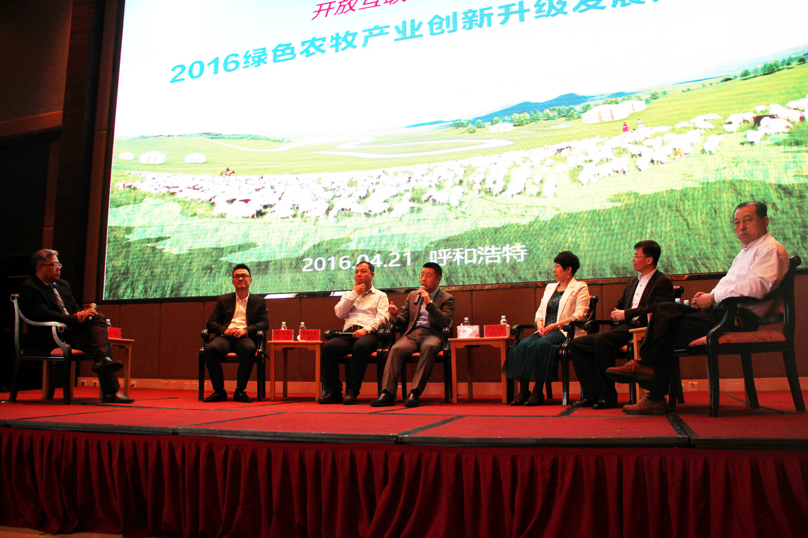 421日,作為會(huì )議最為重要的環(huán)節之一,“開(kāi)放互聯(lián)、跨界融合——2016綠色農牧產(chǎn)業(yè)創(chuàng )新升級發(fā)展論壇”在萬(wàn)眾矚目中開(kāi)幕。本次論壇匯集政府、企業(yè)、金融機構等各方精英,就新時(shí)代供給側改革、金融、互聯(lián)網(wǎng)等經(jīng)濟元素如何融入傳統農牧產(chǎn)業(yè),實(shí)現綠色農牧跨界互聯(lián)的創(chuàng )新發(fā)展進(jìn)行深入探討解讀。自治區農牧業(yè)廳產(chǎn)業(yè)化處副處長(cháng)郟金梅、內蒙古農牧業(yè)產(chǎn)業(yè)化龍頭企業(yè)協(xié)會(huì )會(huì )長(cháng)、蒙羊牧業(yè)股份有限公司總裁閆樹(shù)春、內蒙古農牧業(yè)產(chǎn)業(yè)化龍頭企業(yè)協(xié)會(huì )執行會(huì )長(cháng)兼秘書(shū)長(cháng)林永亮出席會(huì )議,央視財經(jīng)頻道評論員劉戈、金融行業(yè)、農牧行業(yè)企業(yè)家、新聞媒體等約400余人出席。內蒙古農牧業(yè)產(chǎn)業(yè)化龍頭企業(yè)協(xié)會(huì )副秘書(shū)長(cháng)劉俊青主持會(huì )議。