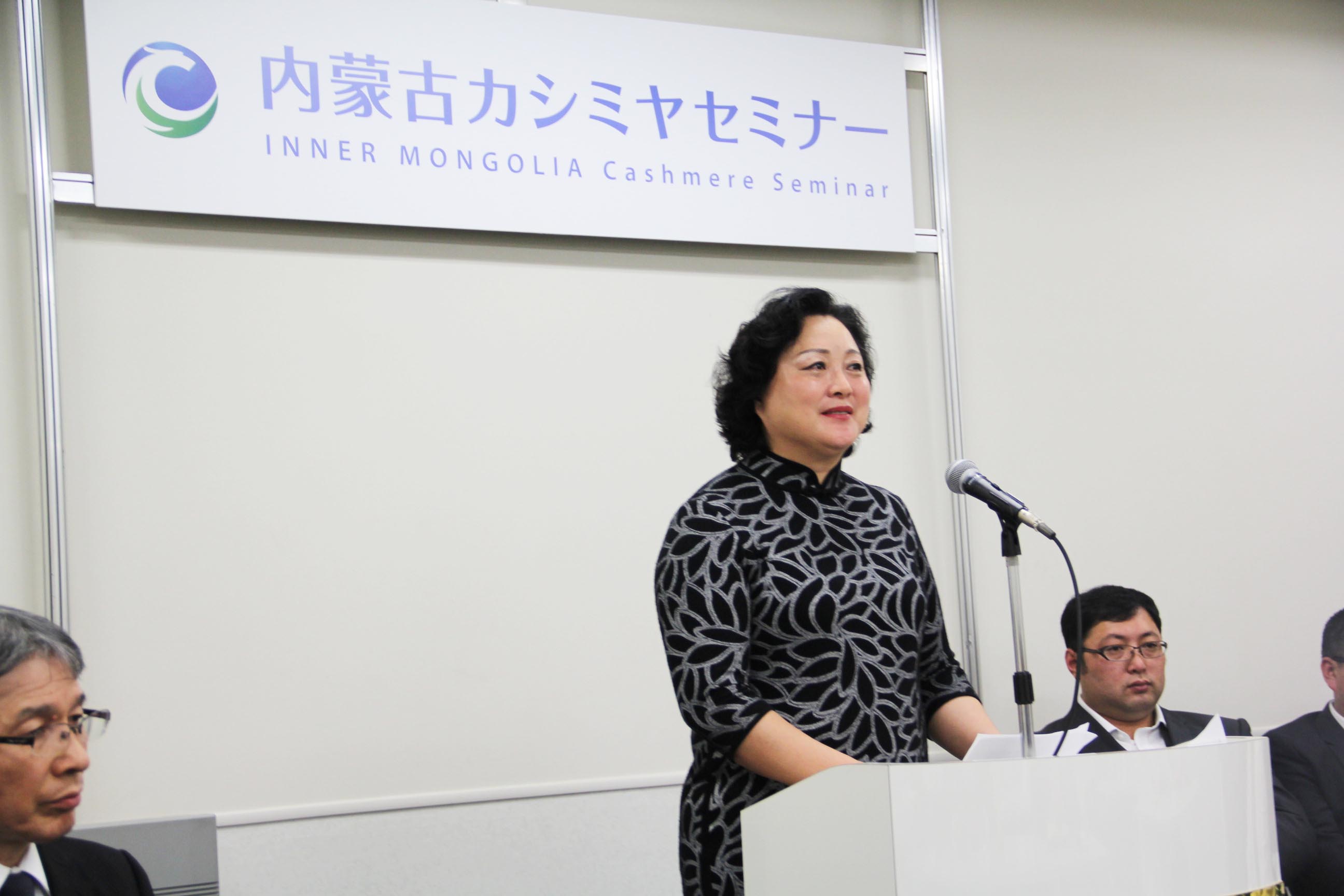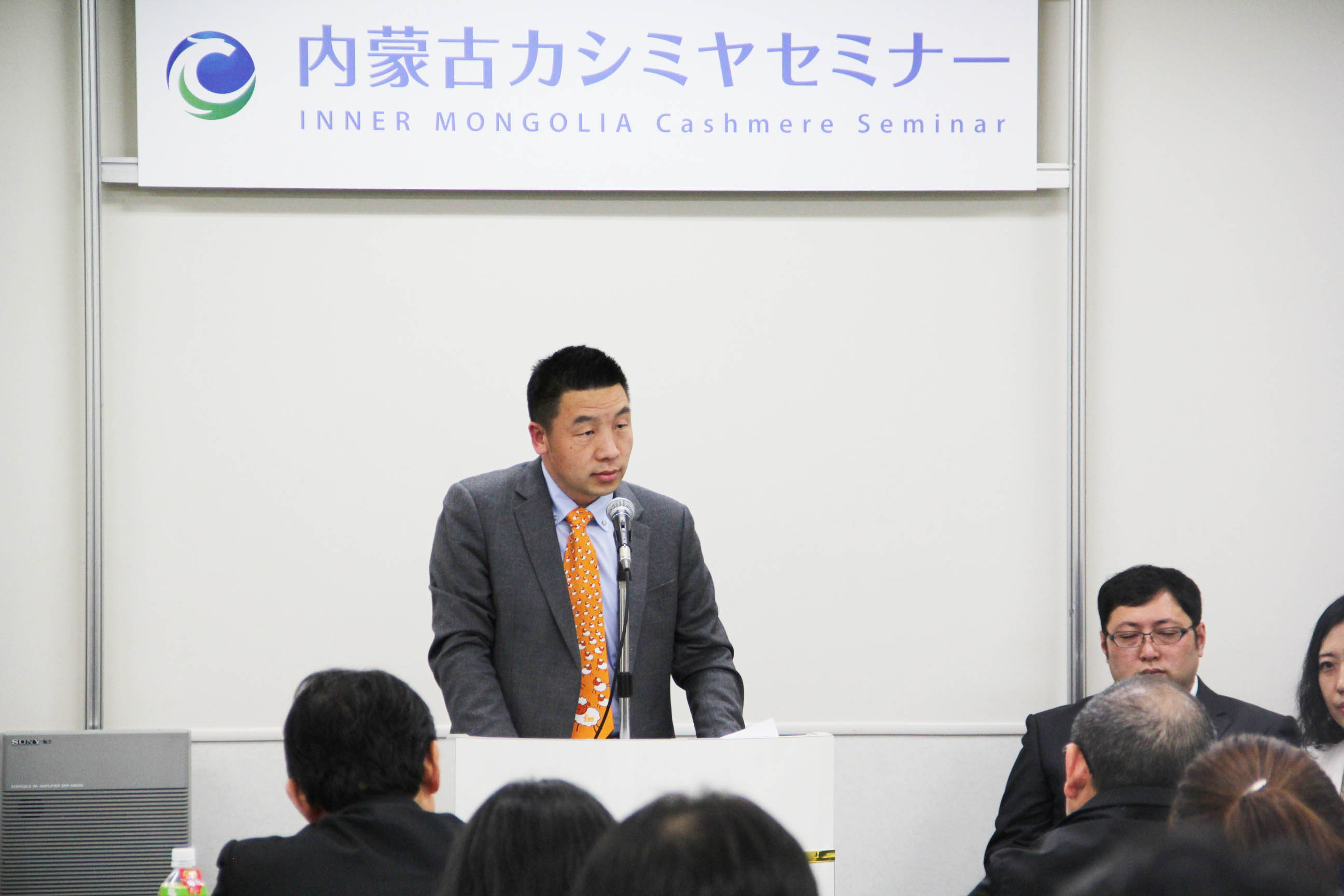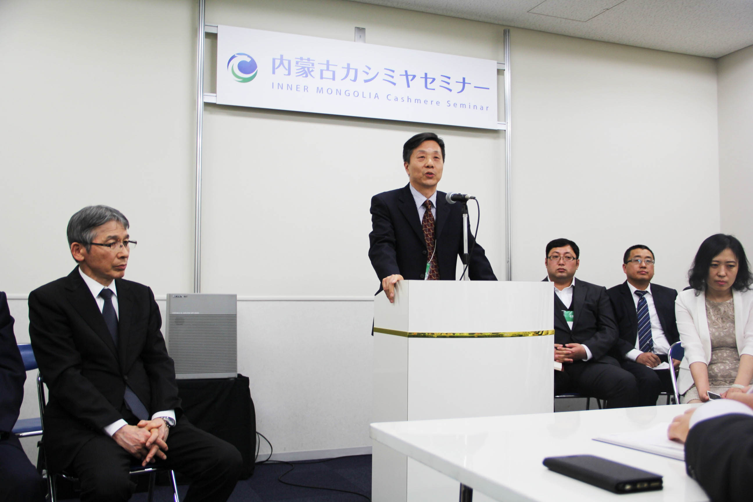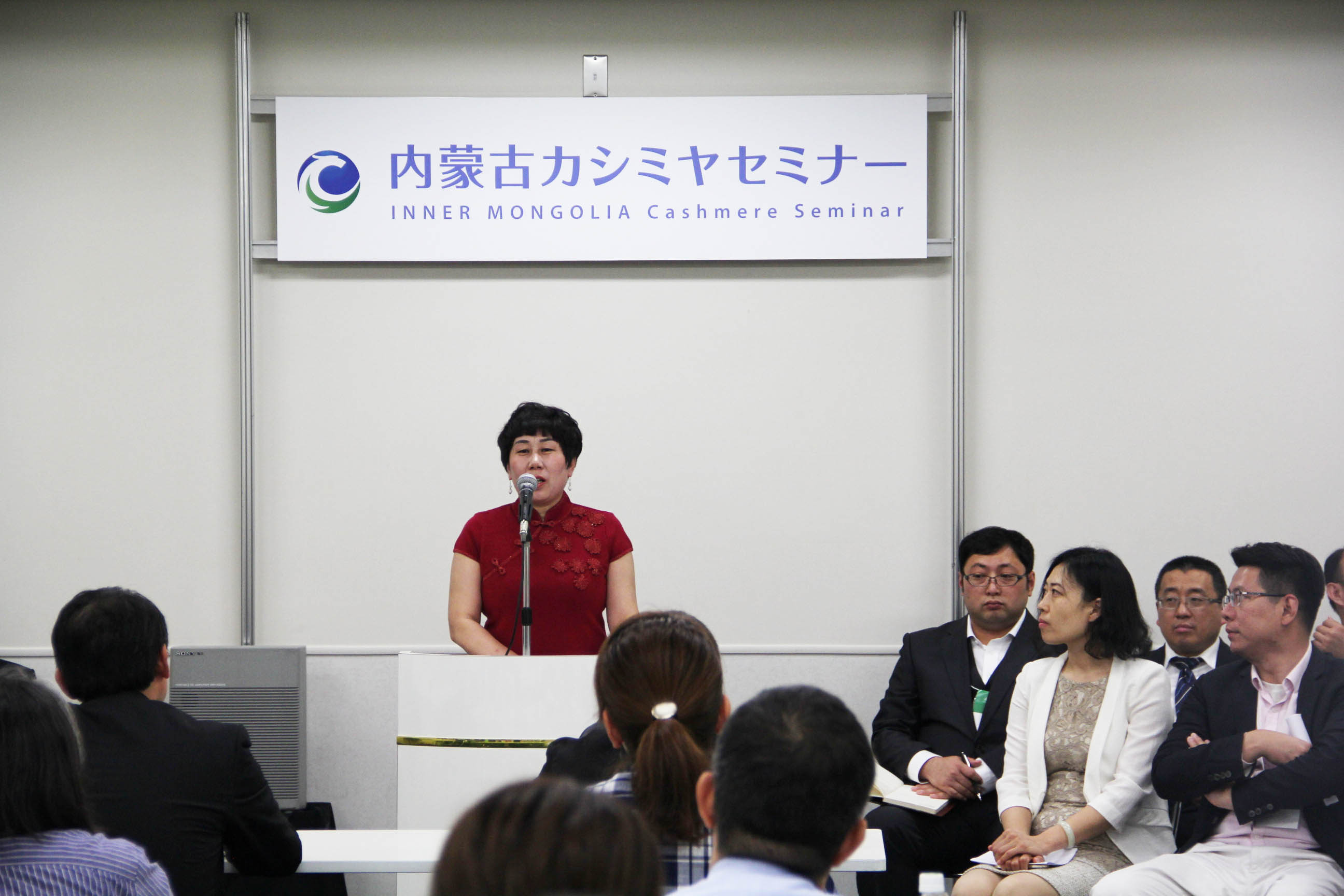 2016426日上午11時(shí),在內蒙古羊絨展區前,舉行了盛大的開(kāi)業(yè)剪彩儀式,內蒙古自治農牧業(yè)廳產(chǎn)業(yè)化處副處長(cháng)郟金梅、內蒙古農牧產(chǎn)業(yè)化龍頭企業(yè)協(xié)會(huì )會(huì )長(cháng)閆樹(shù)春、內蒙古農牧產(chǎn)業(yè)化龍頭企業(yè)協(xié)會(huì )羊絨產(chǎn)業(yè)分會(huì )會(huì )長(cháng)王風(fēng)之出席剪彩儀式,并分別就政府支持、協(xié)會(huì )服務(wù)和企業(yè)自律發(fā)展等幾方面做了精彩致辭。郟金梅副處長(cháng)表示,希望通過(guò)此次活動(dòng),使得社會(huì )各界代表能夠贏(yíng)得機遇、拓展空間,取得豐碩的成果,同時(shí)真誠盼望各方來(lái)賓、新老朋友能夠進(jìn)一步了解內蒙古羊絨,認識內蒙古羊絨,并以此為契機,加強內蒙古羊絨界與日本企業(yè)的合作,攜手發(fā)展,實(shí)現共贏(yíng),共創(chuàng )輝煌。閆樹(shù)春會(huì )長(cháng)在致辭中講到,我們此行不僅是要展示內蒙古羊絨原料優(yōu)勢地位和行業(yè)加工的專(zhuān)業(yè)性,更希望能充分利用各個(gè)平臺廣泛交流,探討合作途徑的契合點(diǎn),推動(dòng)兩國羊絨行業(yè)多方共贏(yíng),共同提升全球市場(chǎng)對羊絨產(chǎn)品的認知度,希望我們的羊絨企業(yè)能團結一致,實(shí)現羊絨產(chǎn)業(yè)的可持續發(fā)展。羊絨產(chǎn)業(yè)分會(huì )會(huì )長(cháng)王風(fēng)之在致辭中表示,通過(guò)內蒙古農牧業(yè)產(chǎn)業(yè)化龍頭企業(yè)協(xié)會(huì )羊絨分會(huì )的平臺,我們勢必會(huì )在培育超細超長(cháng)型產(chǎn)絨山羊、提升優(yōu)質(zhì)種群的規模、建立行業(yè)質(zhì)量標準和抱團發(fā)展,積極進(jìn)行海外市場(chǎng)渠道、品牌、投資等多方面取得突破性進(jìn)展,致力于將中國內蒙古羊絨打造成為全球性的產(chǎn)業(yè)品牌。