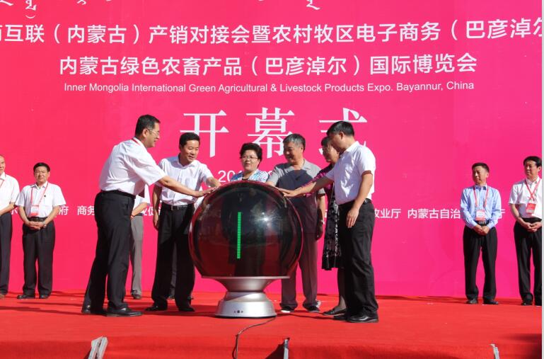 8月14日,全區電子商務(wù)進(jìn)農村牧區工作現場(chǎng)會(huì )、全國農商互聯(lián)(內蒙古)產(chǎn)銷(xiāo)對接會(huì )暨農村牧區電子商務(wù)(巴彥淖爾)高峰論壇、內蒙古綠色農畜產(chǎn)品(巴彥淖爾)國際博覽會(huì )在巴彥淖爾市文博中心南廣場(chǎng)開(kāi)幕。自治區副主席艾麗華,國家商務(wù)部原副部長(cháng)張志剛,國家商務(wù)部流通產(chǎn)業(yè)促進(jìn)中心主任路政閩,市場(chǎng)體系建設司副司長(cháng)孔福生,國家科技部科技評估中心主任王瑞軍,內蒙古自治區農牧業(yè)廳副廳長(cháng)云挨厚,中國青年企業(yè)家協(xié)會(huì )副秘書(shū)長(cháng)、中國青年電商聯(lián)盟秘書(shū)長(cháng)、中國農村青年致富帶頭人協(xié)會(huì )秘書(shū)長(cháng)郭鵬,內蒙古農牧業(yè)產(chǎn)業(yè)化龍頭企業(yè)協(xié)會(huì )執行會(huì )長(cháng)林永亮,楊凌農業(yè)高新技術(shù)產(chǎn)業(yè)示范區黨工委委員,紀工委書(shū)記王寶平等領(lǐng)導嘉賓應邀出席開(kāi)幕式。巴彥淖爾市委書(shū)記常志剛在開(kāi)幕式上致辭,市委副書(shū)記、市長(cháng)張曉兵主持開(kāi)幕式。
