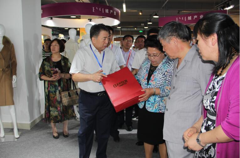 協(xié)會(huì )副會(huì )長(cháng)、維信(內蒙古)羊絨集團有限公司董事長(cháng)為艾麗華副主席等領(lǐng)導介紹企業(yè)情況