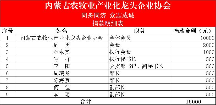 標題:眾志成城,抗擊疫情— 內蒙古農牧業(yè)產(chǎn)業(yè)化龍頭企業(yè)協(xié)會(huì )在行動(dòng)