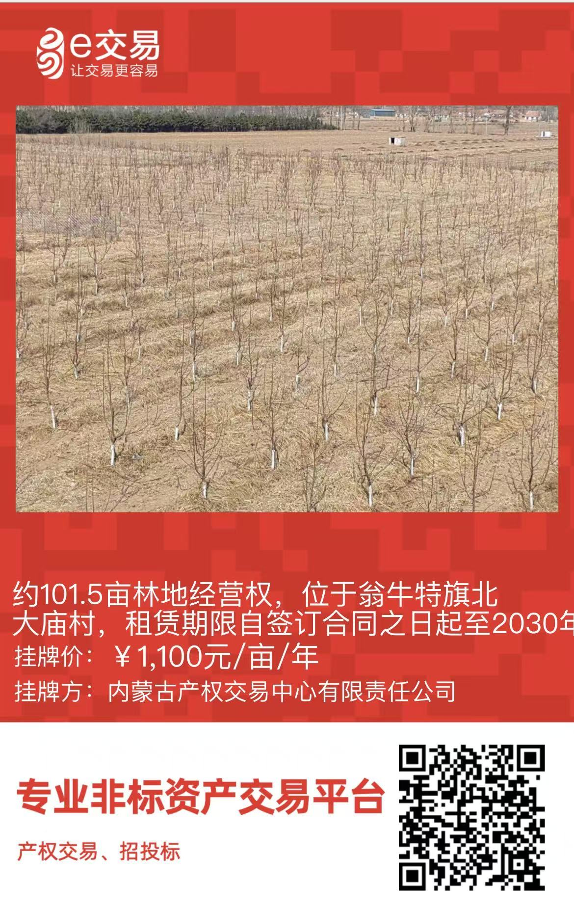 101.5畝采摘園經(jīng)營(yíng)權,位于翁牛特旗北大廟村,租賃期限自簽訂合同之日起至2030年12月1日(翁牛特旗全寧街道北大廟村股份經(jīng)濟合作社)