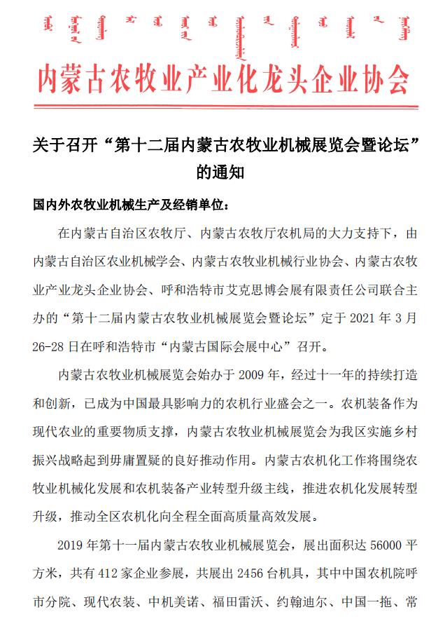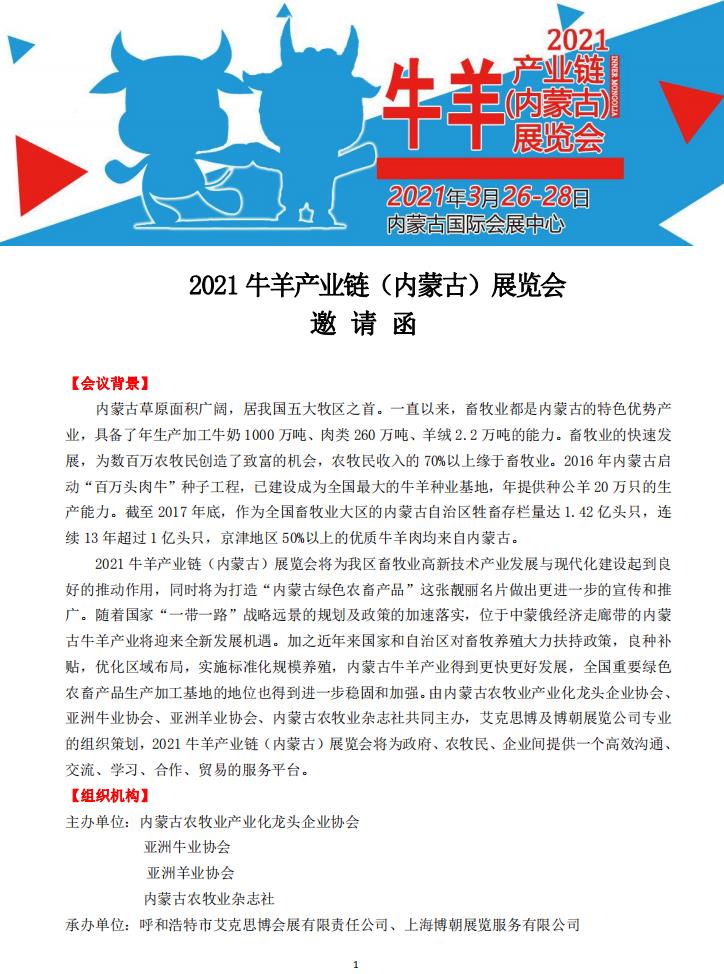 2021牛羊產(chǎn)業(yè)鏈(內蒙古)展覽會(huì )邀請函