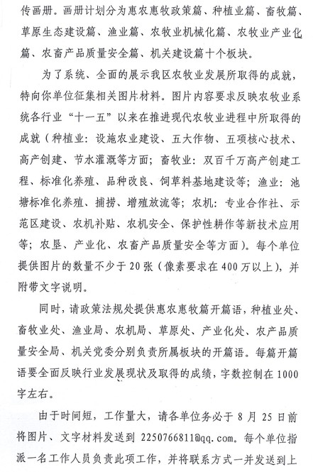 關(guān)于內蒙古綠色農畜產(chǎn)品博覽會(huì )農牧業(yè)成就宣傳畫(huà)冊征集圖片材料的通知