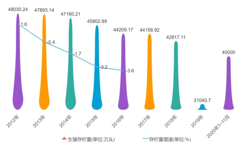 2020年,隨著(zhù)全國規模豬場(chǎng)、散養戶(hù)的增加,新增產(chǎn)能陸續釋放,截至11月末,全國能繁母豬存欄已連續14個(gè)月增長(cháng),生豬存欄已連續10個(gè)月增長(cháng)。11月末全國能繁母豬存欄超過(guò)4100萬(wàn)頭、生豬存欄超過(guò)4億頭,生豬產(chǎn)能已恢復到2017年底的90%以上。11月,規模豬場(chǎng)新生仔豬超過(guò)3100萬(wàn)頭,比年初增長(cháng)94.1%。