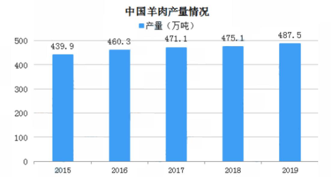 2019年內蒙古羊肉產(chǎn)量位居第一達到109.8萬(wàn)噸,新疆、山東排名第二和第三,產(chǎn)量分別為60.3萬(wàn)噸、36.9萬(wàn)噸,此外,河北、河南、四川、甘肅、云南羊肉產(chǎn)量超20萬(wàn)噸。2015年全國羊肉產(chǎn)量439.9萬(wàn)噸,2019年增至487.5萬(wàn)噸,同比增長(cháng)2.6%。