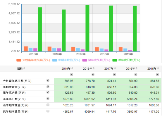 內蒙古2015-2019年肉豬、肉羊、肉牛存欄情況